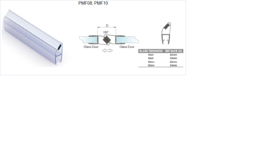 Magnetiskais blīvprofils 90/180° 8mm stiklam 2.2m