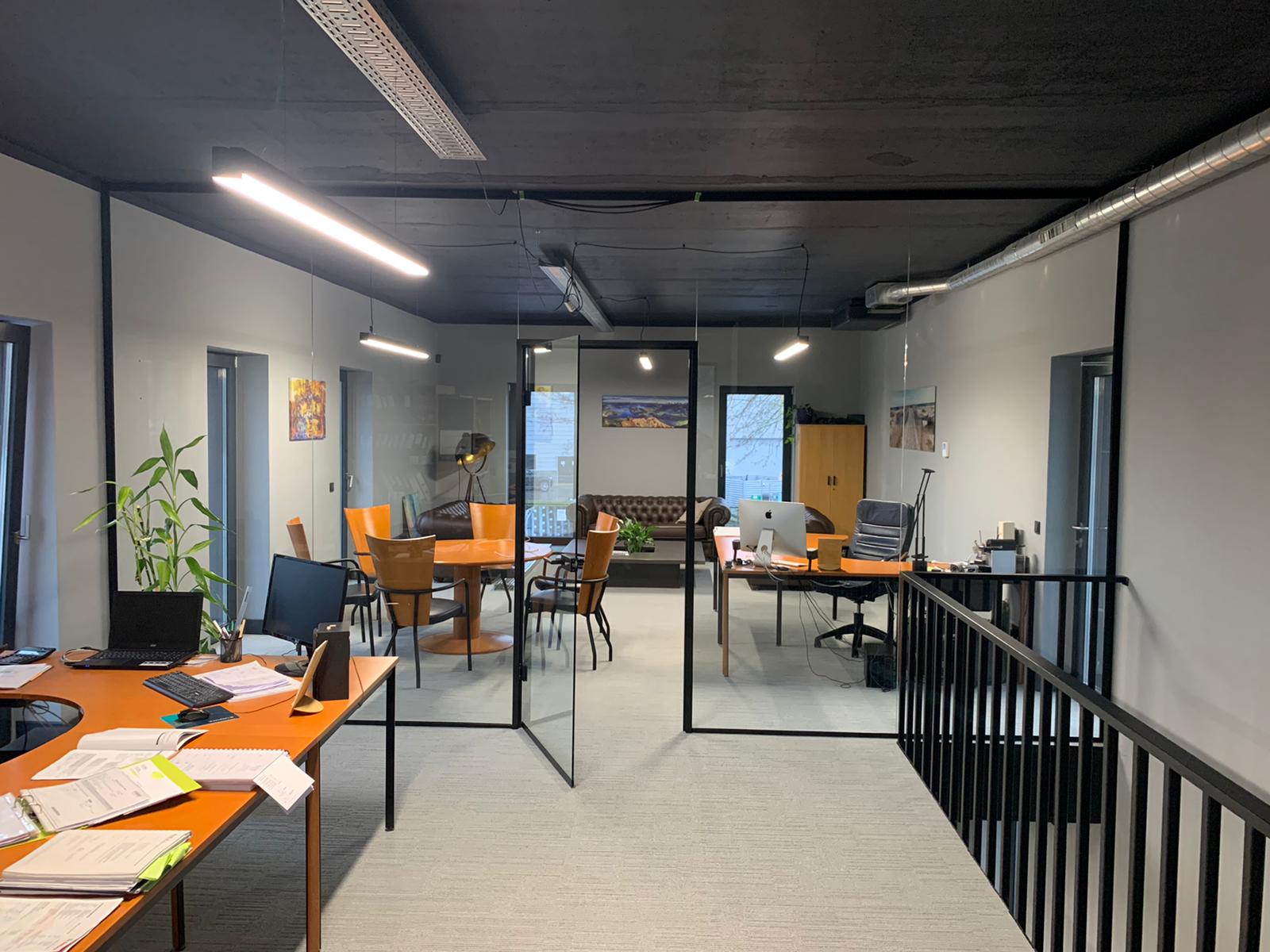Stikla starpsienas ar vai bez durvīm telpu sadalīšanai, saglabājot gaismu un plašuma sajūtu.