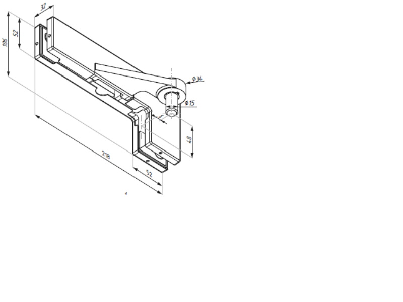 Augšējās eņģes stiprinājums uz stikla Como ar iznestu asi, labais
